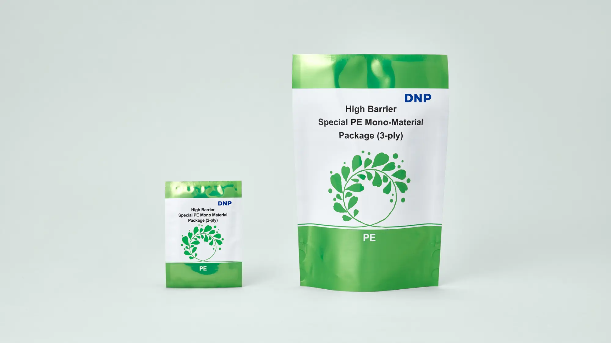 DNP has developed the Mono-material packaging that matches the performance of multi-material packaging, leveraging its proprietary technologies honed over the years, including converting, film forming, and vapor deposition techniques. For example, we replaced packaging that traditionally used two types of materials, nylon film and PE film, with packaging made from a single material, PE film only.