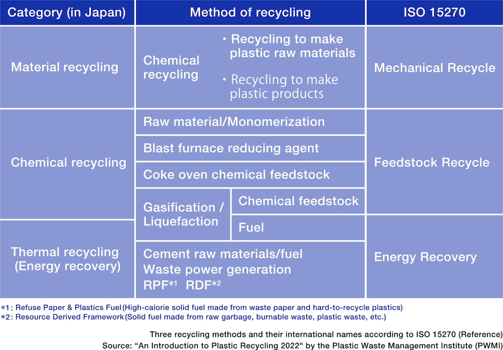 According to the Environmental Impact Report on Plastic Recycling Methods (2007) by The Japan Containers And Packaging Recycling Association, chemical recycling surpasses material recycling in terms of reducing CO2 emissions, though the extent of this advantage varies among methods. Nonetheless, chemical recycling can decrease both energy consumption and CO2 emissions compared to producing PET resin from new petroleum-based raw materials.