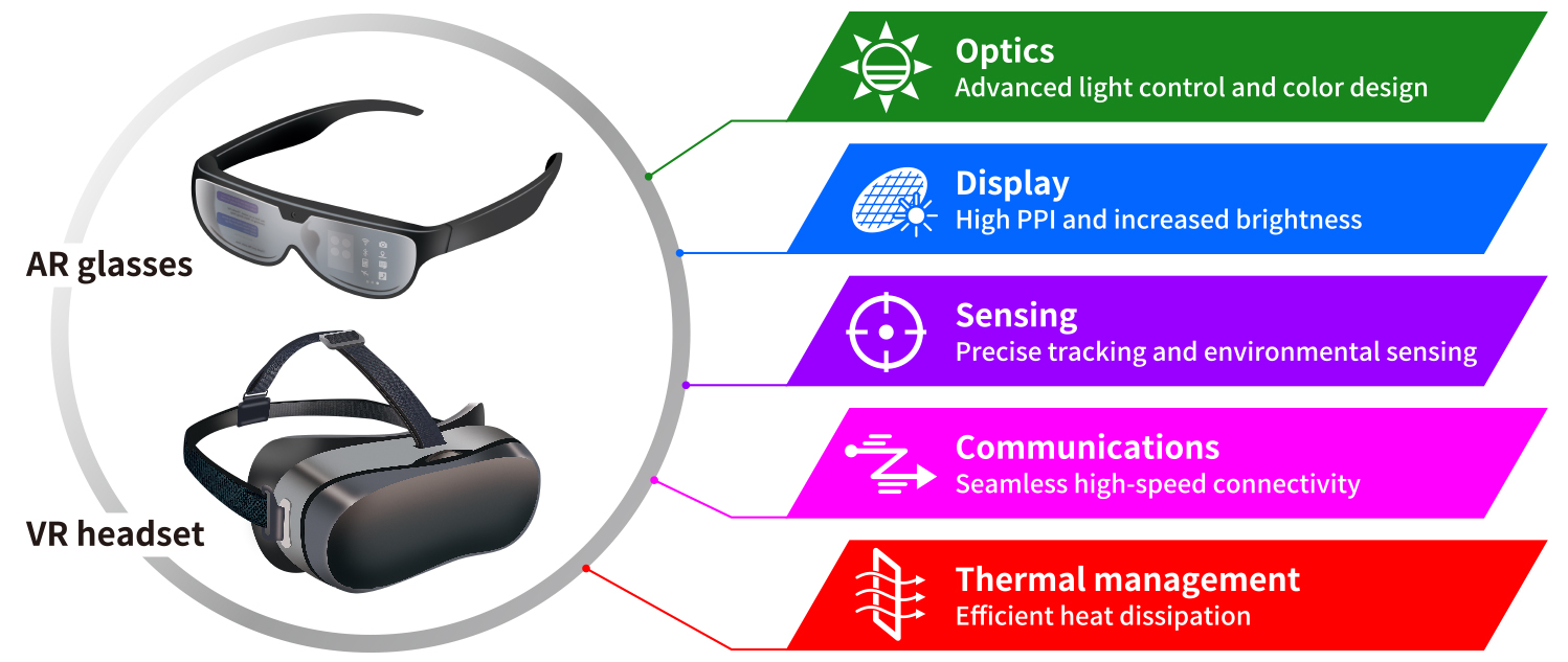 DNP's optics technologies are pivotal in advancing AR glasses and VR headset. They contribute, for example, to reduce laser light reflection and optimize incident angles to mitigate distortion. These innovations also deliver a wider FoV, higher brightness, lightweight, thin, and reduced chromatic aberration. DNP ensures sharper, more accurate visual experiences, providing a superior optical performance.