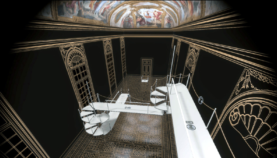 This system enables visitors to explore historical buildings and works of art by wearing a head-mounted display and strolling around the VR space using their own feet. Incorporating real-world elements like handrails enhances the sense of being in the actual environment despite the virtual reality setting. The system broadens the spectrum of art experiences, allowing the viewing of artworks that may be inaccessible up close, such as ceiling paintings, or enjoying them online.