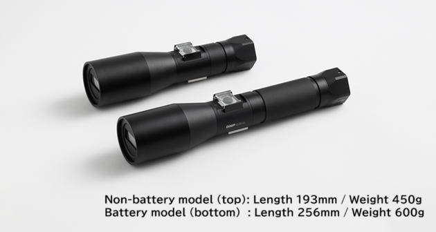 - The battery-equipped model can be used for up to 3 hours in continuous mode and up to 6 hours in flickering mode.