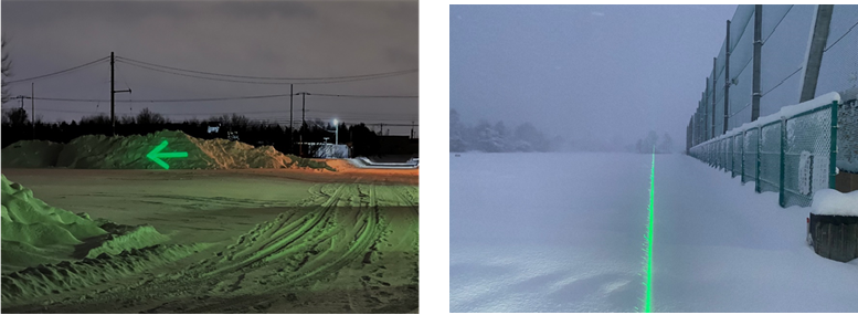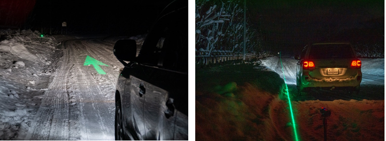 This lighting device can display various symbols, such as lines, arrows and text, with high resolution over long distance . It can be used for zoning, guidance, alerts etc. to improve safety and operating efficiency. Other excellent features of the device include its compact size and low energy-consumption which enable easy setting and long-term operation with small mobile batteries.