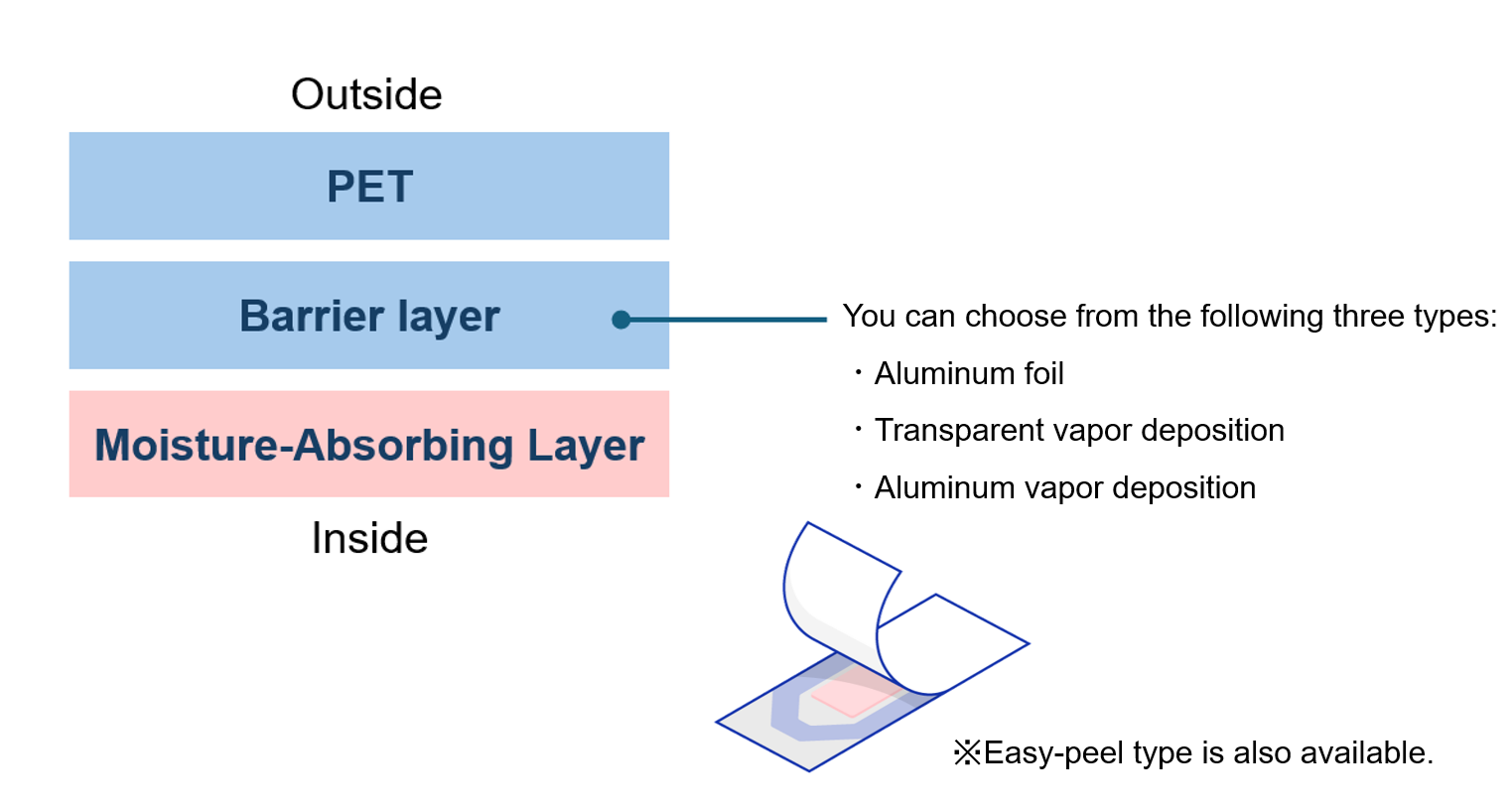 PET / Adhesive / Aluminum Foil / Adhesive / Moisture-Absorbing Layer