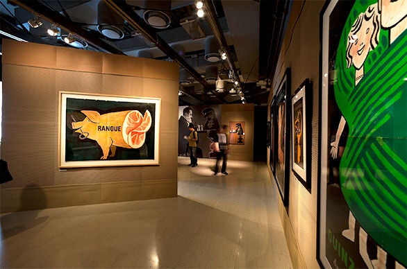 ギンザ・グラフィック・ギャラリー(写真左)、第299回企画展「レイモン・サヴィニャック展 ─ 41歳、『牛乳石鹸モンサヴォン』のポスターで生まれた巨匠」(2011年)(写真右)