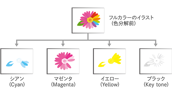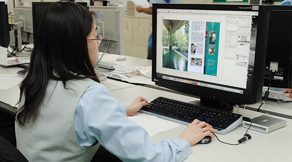 文字・写真原稿の整理やデザイン、レイアウト、編集作業を行います。使用する写真や図柄の色の調整や不要部分の削除といった、画像の処理もこの段階で行います。原稿をシアン、マゼンタ、イエロー、ブラックの4色に分解するなど、印刷製造前の準備作業で、前工程とも言います。