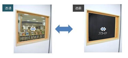 オフィスや公共施設などで、プライベートな空間を確保するため、電気によって透明なガラスを擦りガラス調に切り替えて遮蔽する製品が使われるケースがありました。この製品は、常に電力が消費されるほか、電気配線が必要で施工に時間がかかるなどの課題がありました。