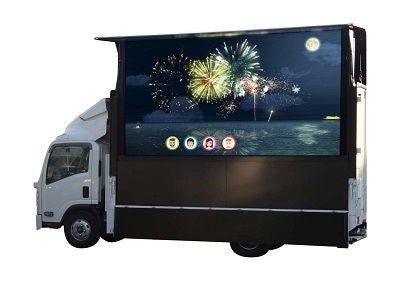 2.ヴィジョンカーのデジタルサイネージ上にバーチャル花火を打ち上げることができる。複数人が同時に参加できる。