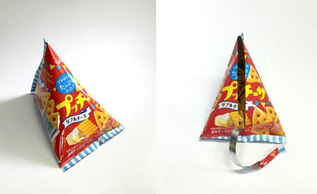 「DNP直進開封シーラント IL-CUT」は、2017年3月28日発売の江崎グリコ様のスナック菓子「プッチーザ」に採用されました。テトラ型のパッケージ形状でもまっすぐに開封しやすくなっています。