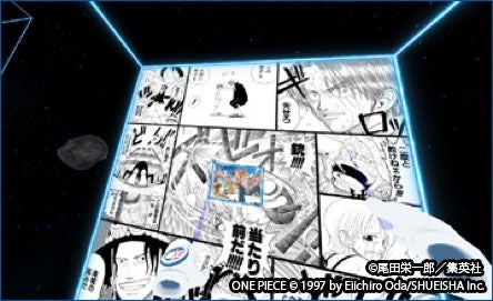 「Oculus Rift」を使って、VR空間で人気マンガ「ONE PIECE」の名場面を等身大の大画面で手にとって読むことができます。人気キャラクター「チョッパー」の立体パズルも楽しめます。