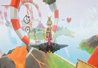 足こぎをしながら、360度の実写映像で旅行体験するコンテンツ(左)と、足こぎをしながら、浮き輪をくぐり抜けコンテンツ(右)