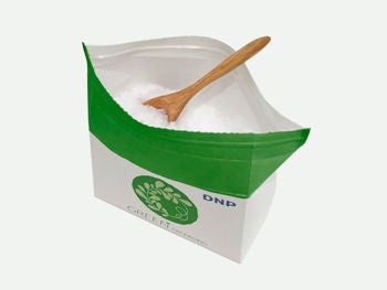 本製品は、開口部にプラスチック製のチャックを取り付けることで、開封後のリクローズを可能にしました。また、バリアフィルム「DNP透明蒸着フィルム IB-Film」を使用し、水蒸気や酸素に対する高いバリア性も付与しています。粉末製品や固形物を入れる容器をプラスチック容器から本製品に切り替えることで、プラスチックの使用量を削減します。また、角型形状であることから、内容物によっては容積を減らすことができ、輸送効率や陳列効率の向上に寄与します。