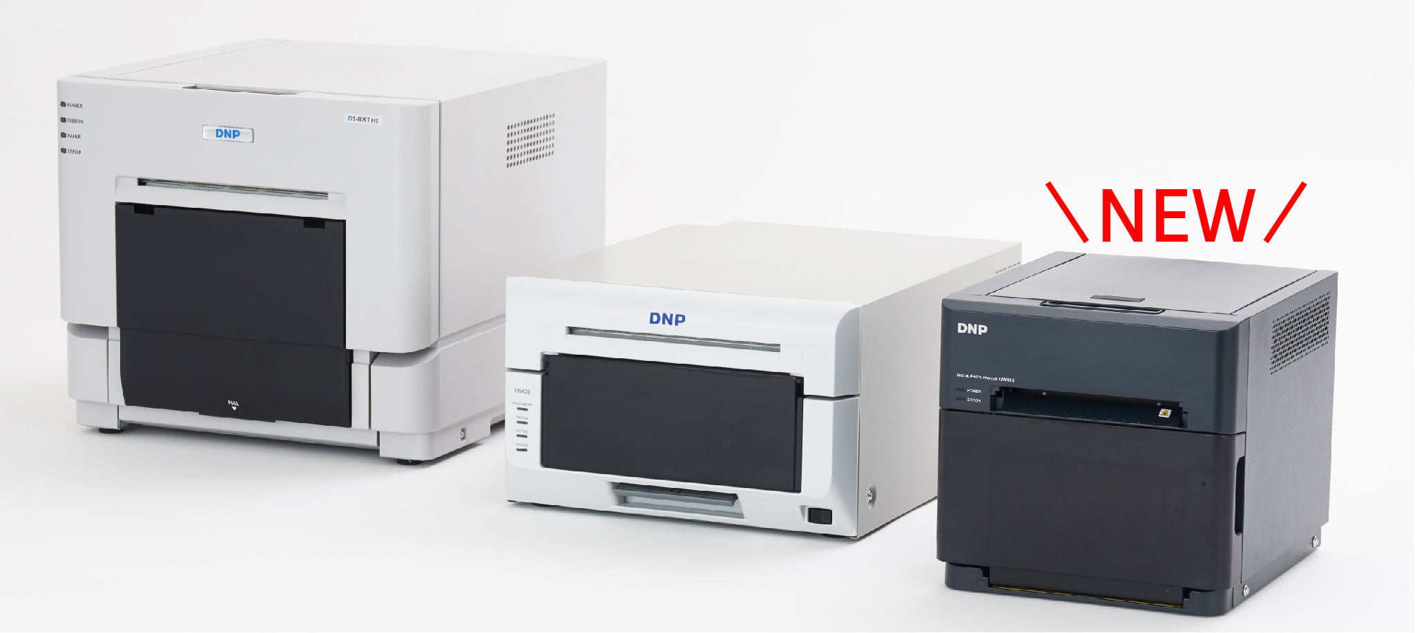 当社既存製品のDS-RX1HS(写真左)とDP-DS620(写真中央)、新製品のDP-QW410(写真右)