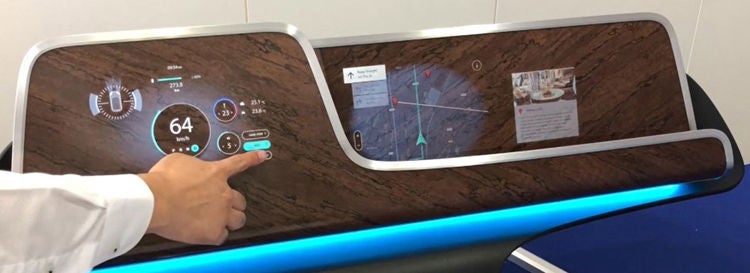 木目柄や幾何学柄などの高意匠なデザインを施したパネルに、必要な時だけディスプレイや操作スイッチなどを表示する加飾パネルです。操作しない時は落ち着いた室内空間を演出するデザインとなっており、車内空間をより快適にします。