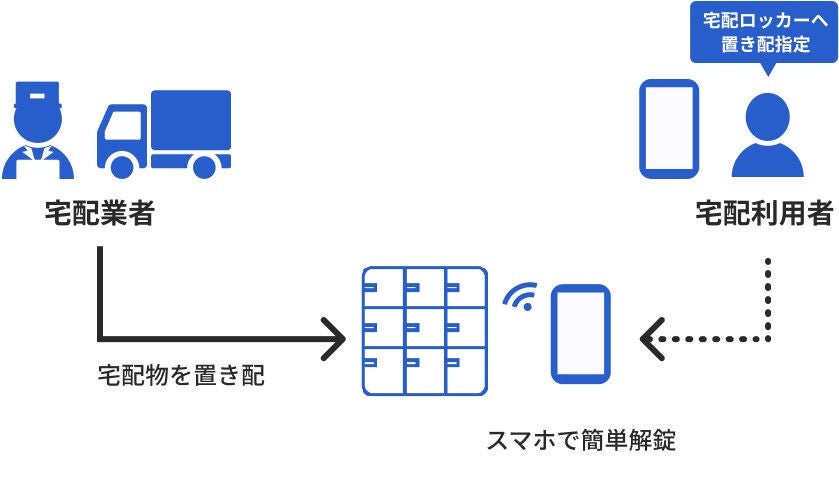 スマートフォンで開閉できる宅配ロッカーは、近年需要が増えている個人配送向けの荷物の非対面受け取りに活用できます。デジタルキーにより安全な置き配を可能にすることで、宅配業者は再配達の手間がなくなり、宅配利用者は時間に縛られることなく生活動線上で荷物を受け取ることができます。
