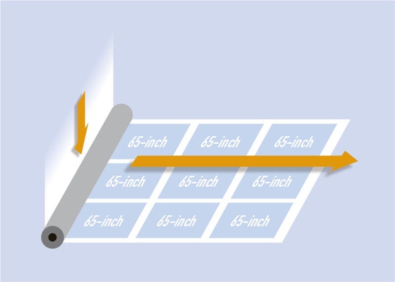 - 世界的に需要が増加している65インチの大型テレビ向けの光学機能性フィルムを効率良く生産(面付け)することができます。