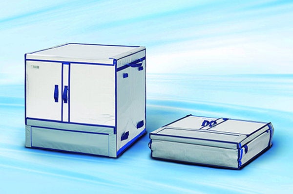 電気を使わずに、内部の温度を長時間一定に保つことができます。生鮮食品や工業品、医薬品など、十分な温度管理が必要な物流の課題解決に貢献します。常温品と冷蔵・冷凍品の混載輸送による効率化、リユースによる使い捨て資材の削減など、環境への負荷も大きく低減する製品です。