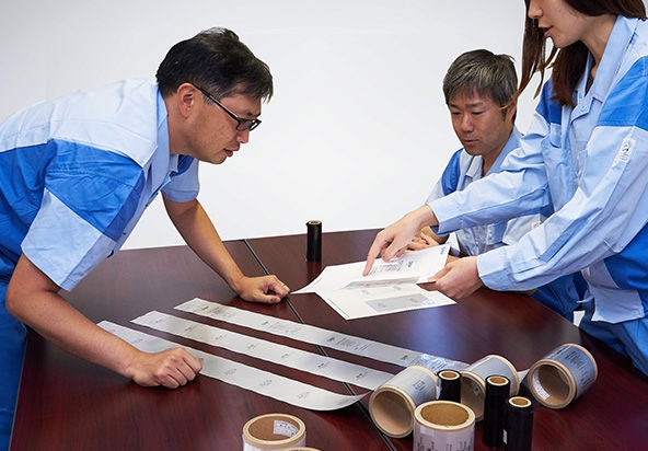 実験とともに重要なのが、工場で製品の再現が可能かどうかを検証する段階だ。実験室で手作業によって作成した材料構成が、そのまま工場の機械で再現できるとは限らない。そんな状況で頼りになるのは、機械を熟知している製造部門のベテラン従業員だ。「狭山工場の製造部門の人たちはプロ意識が高く、我々が開発したものを製品にしようという強い意志があります。耐熱性の高いリボンも、製造部門の人たちの尽力なしには完成できなかった」。