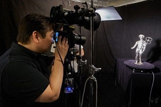 右上 : 自動で回転・撮影が可能な独自開発のターンテーブルを使用 (©DNP)