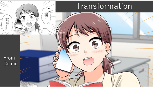 「近年、テレビ離れや倍速視聴※5などのキーワードに象徴されるように、若年層を中心に再生時間の長い映像を敬遠する傾向が生まれています。実際に私も、動画共有サービスでショート動画のほうをクリックしがちです。その意味では、“わかりやすく伝える力”があったとしても、まず『観てみたい』と思ってもらえなければ始まりません。ライトアニメとしてもそうしたニーズに応えていかなければいけないので、通常のテレビアニメよりも短い尺で制作したり、スマホでの閲覧を前提とした縦型のショートアニメを開発したりするなど、いろいろな方向性を模索しています。ライトアニメが新しい“変換手法(静止画から動画への)”であるからこそ、既存の映像フォーマットにとらわれずに、これから求められる新たなフォーマットを常に追求していきます」(端山)。