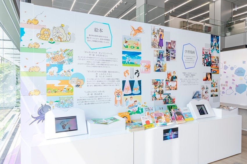 スクリーンで上映する日替わりのライトアニメ、原作となったマンガとライトアニメを見比べられる展示、マンガ家さんや製作者たちの生の声を伝える展示、キッズ向けや学習コンテンツの映像化事例など、多角的にライトアニメの“いま”に触れて・感じていただけます。原作となったマンガや絵本は、DNPプラザ1階の「外濠書店」で購入可能! お気に入りの作品との出合いにつながるかも。