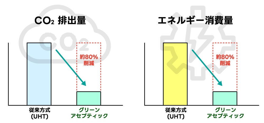 飲料滅菌工程でのCO2とエネルギー消費量の削減率