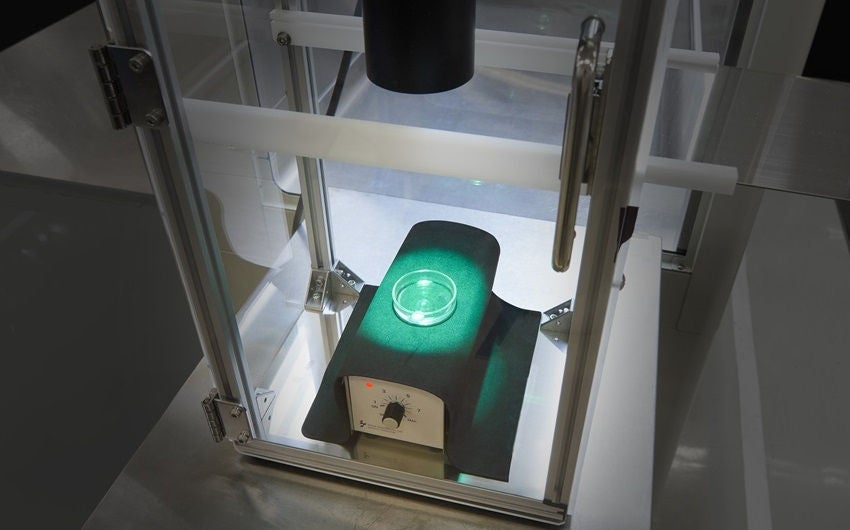 DNPの研究室にあるグリーンアセプティックのテスト機。規定の無菌レベルの保持についてさまざまな検証を行っている。