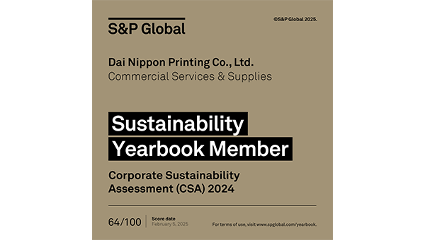 S&P Dow Jones Indices社は、世界の主要な企業を対象に経済・ガバナンス、環境、社会の側面からサステナビリティの取り組みを評価し、各産業の上位15%を「The Sustainability Yearbook」に掲載しています。DNPは「Yearbook Member」 として、2022年より4年連続選定されています。