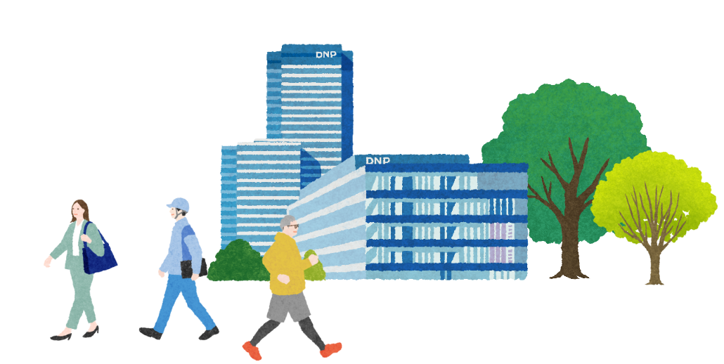 市谷地区は、DNPが社会に対し、事業活動を通じて“未来のあたりまえ”をつくる象徴的な場であるとともに、「市谷の杜」を通じて東京の都心部にありながら人と自然が共生し、地域とともに成長する“未来のあたりまえ”をつくる場となっています。