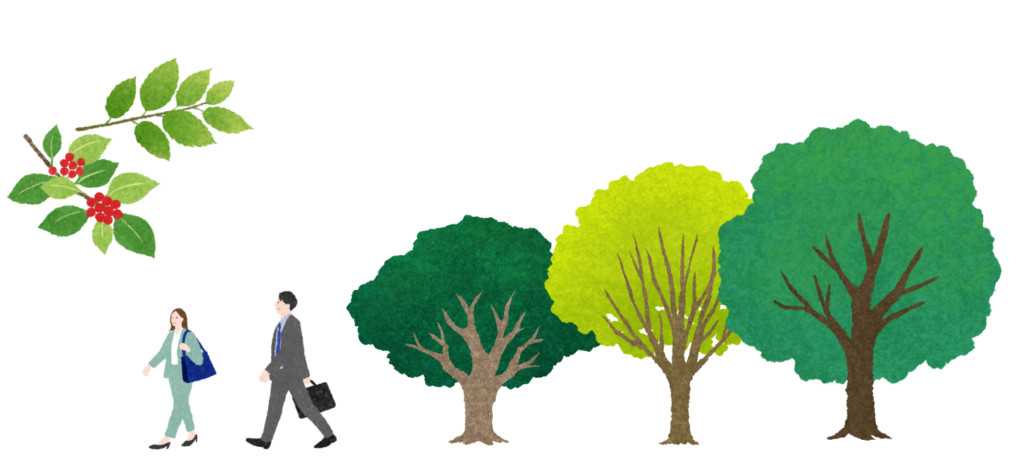 2つ目は「安全面・衛生面・防災面の整備」です。周辺地域と調和した緑地として、周囲の歩道拡張と整備、下草の処理や枝の剪定など管理・維持など、快適で安心できる公共空間となることをめざしています。例えば、自然界における階層構造性を考慮しつつ、安全面から視界を遮る高さの葉張りは避けるなどの工夫を施しています。