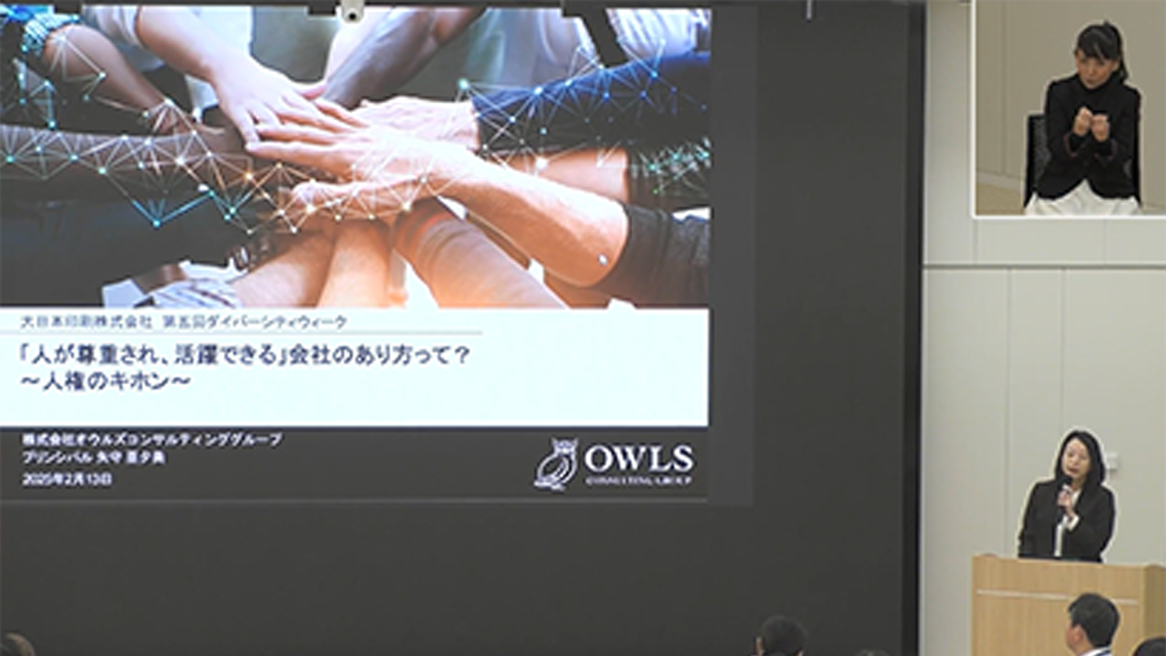 DNPは、事業活動を支える社員一人ひとりが人権尊重の重要性を理解し、日々の活動に反映することが欠かせないと考えています。そのため、約3万人のDNPグループ社員を対象に、人権への理解促進を目的として、2021年度から「ビジネスと人権」のeラーニングを実施しています。2024年度は、「DNPグループ人権方針」と国際基準に基づく人権課題等をテーマに、分かりやすさを重視したマンガ形式の研修を実施し、約21,600名の社員が受講しました。さらに、社外の有識者を招き、社員が人権尊重の行動をとれることを目的にしたプログラムも実施しています。そのほか、人権週間には社内サイネージやイントラネットを通じた意識の啓発や、社会貢献活動と連携した人権への取り組みも実施しています。また、「ダイバーシティ&インクルージョン」や、特定の事業部門を対象とした鉱物調達に関する教育など、多種多様な研修プログラムを行っています。