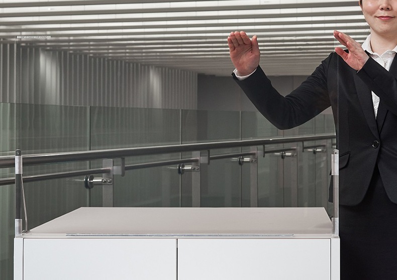 The above photo shows DNP’s transparent screen, which looks like a 3-mm-to-4-mm thick transparent plastic sheet. Special processing done to the screen is invisible to the naked eye.
