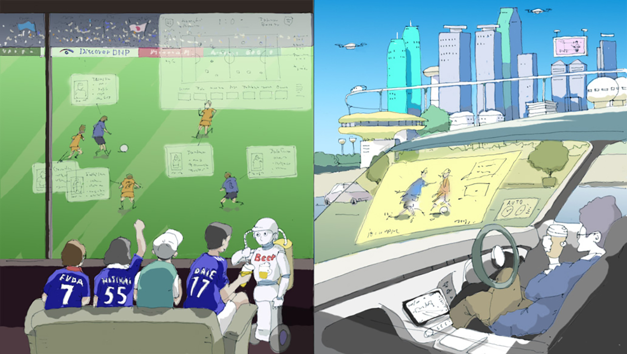 You might be surprised to see an animated character floating in the air, as if the world of anime had burst into the real world. But there’s no reason to be surprised. What you’re seeing is an image projected onto a transparent screen. Technology developed by Dai Nippon Printing Co., Ltd. (DNP), can clearly project such images even in bright, well-lit places, making it appear that an object actually exists right in front of you. Our transparent screen opens up all kinds of possibilities.