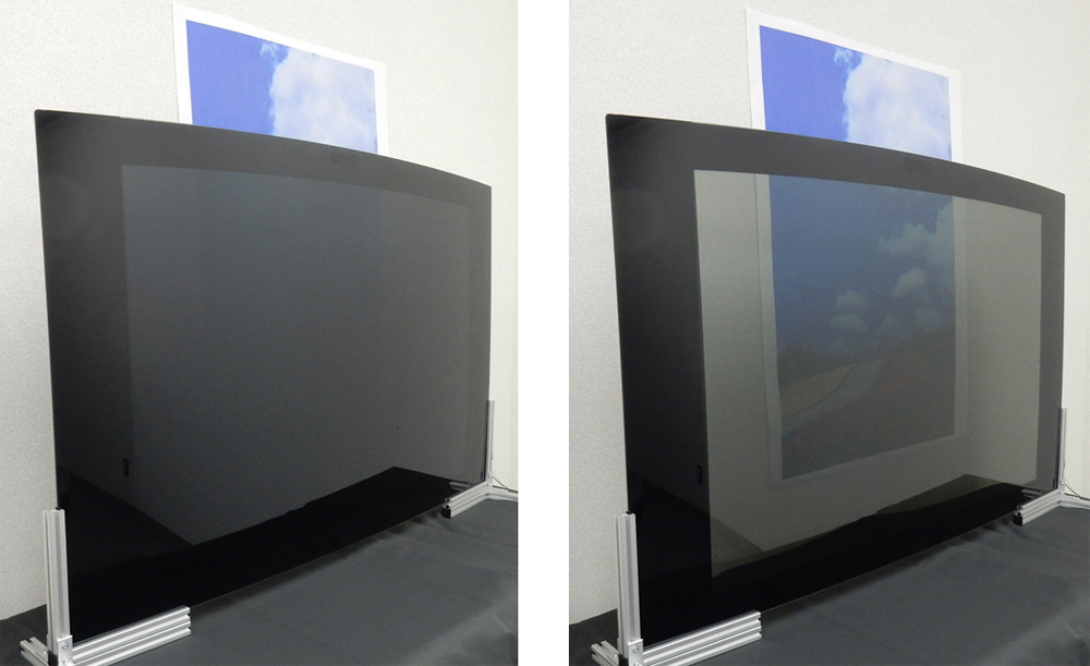 • The response time of the light control when charged is less than one second, allowing for instantaneous switching of color contrast. As a result, the new product is suitable for a variety of uses such as the sun roofs and the rear windows used in automobiles, where rapid switching is necessary.