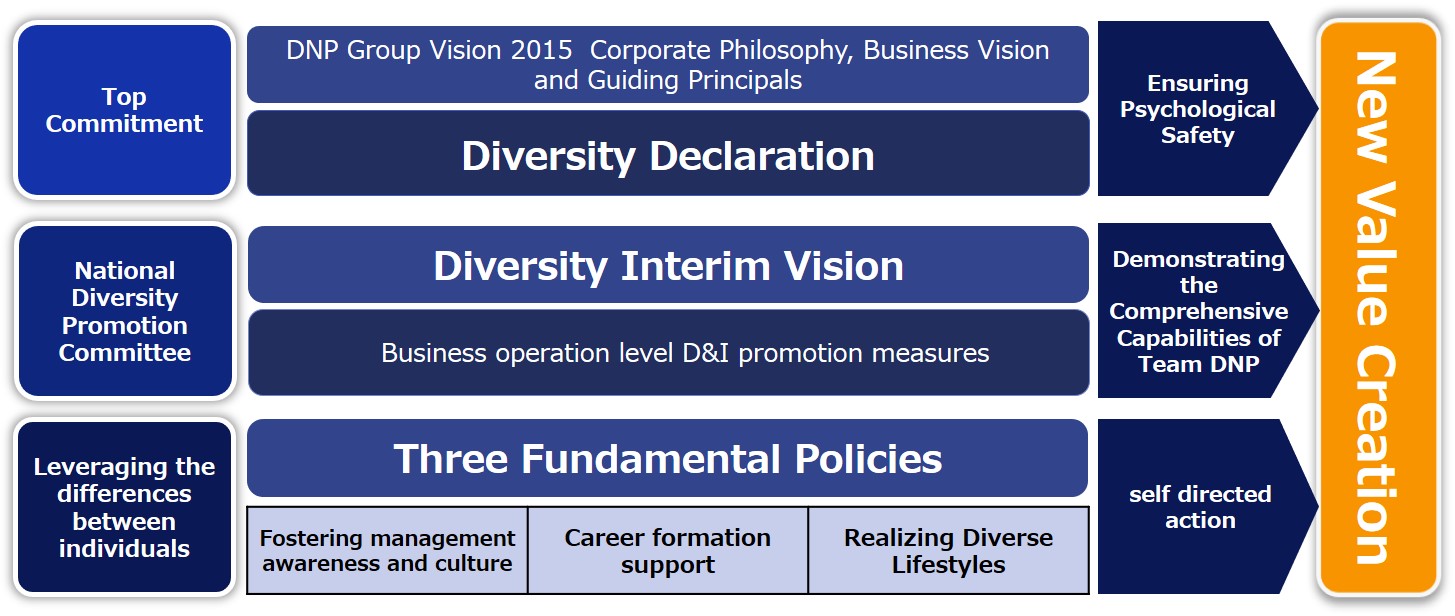 As a means of realizing such value creation, in July 2020, DNP announced the top commitment DNP Diversity Declaration, to accelerate the promotion of Diversity and Inclusion1 (D&I), including ensuring psychological safety in the workplace.