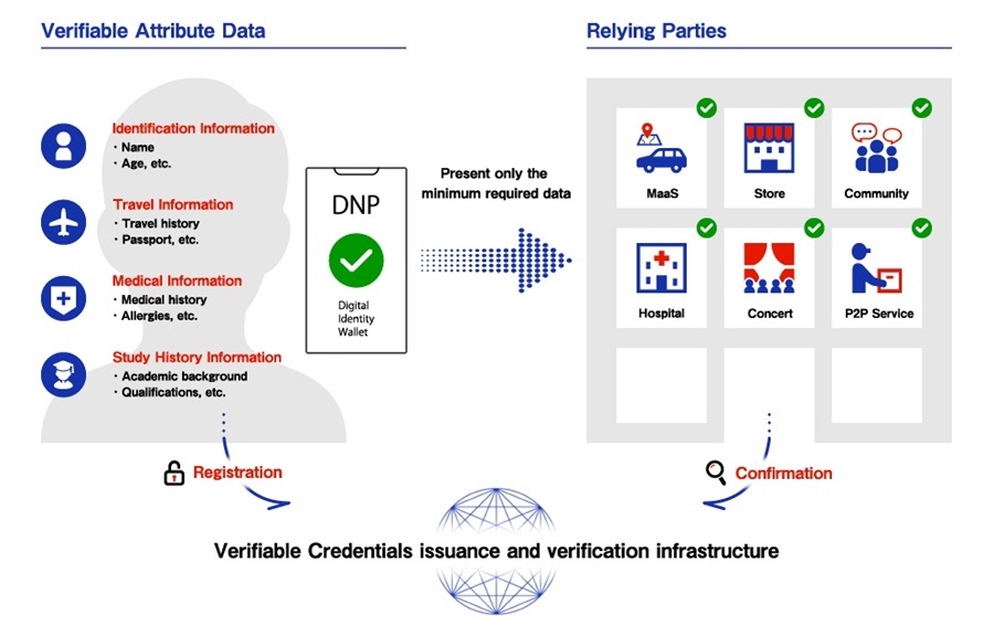 DNP will be in a position to provide companies and organizations promoting VC-related businesses with the necessary functions to match planned uses and environments. Such functions include VC issuance and verification systems, and digital identity wallets, as a mechanism allowing consumers to verify their identity via smartphones where consumers used to manage VC.