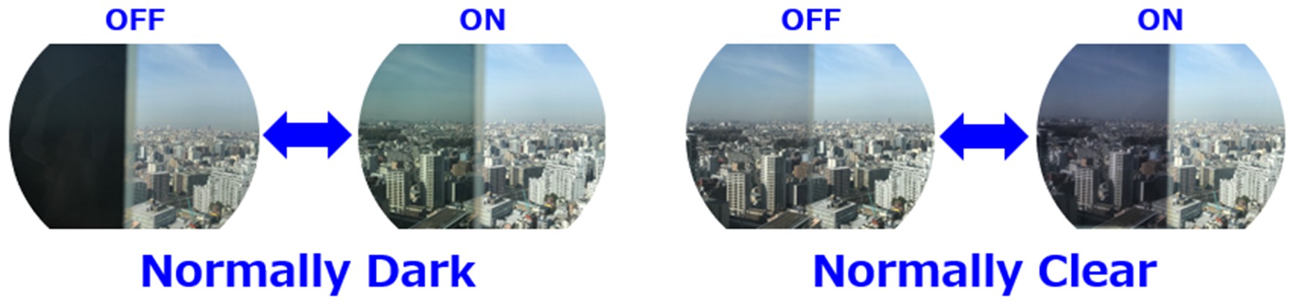2. GHLC (Guest-Host Liquid Crystal) : A light control technology in which special dyes are mixed with liquid crystals, and applies voltage to alter the liquid crystals orientation, changing the appearance of the dyes. By changing the positioning of the pigments via electrical stimulation, it is possible to control the glass transparency instantaneously.